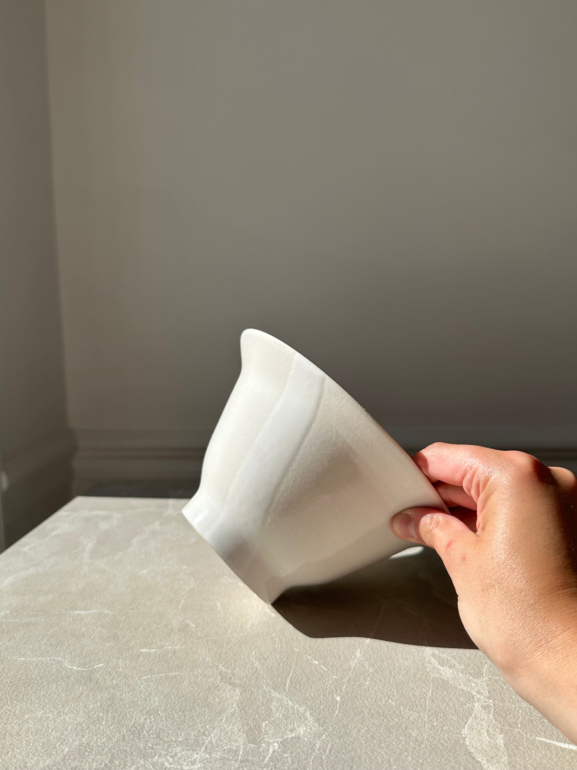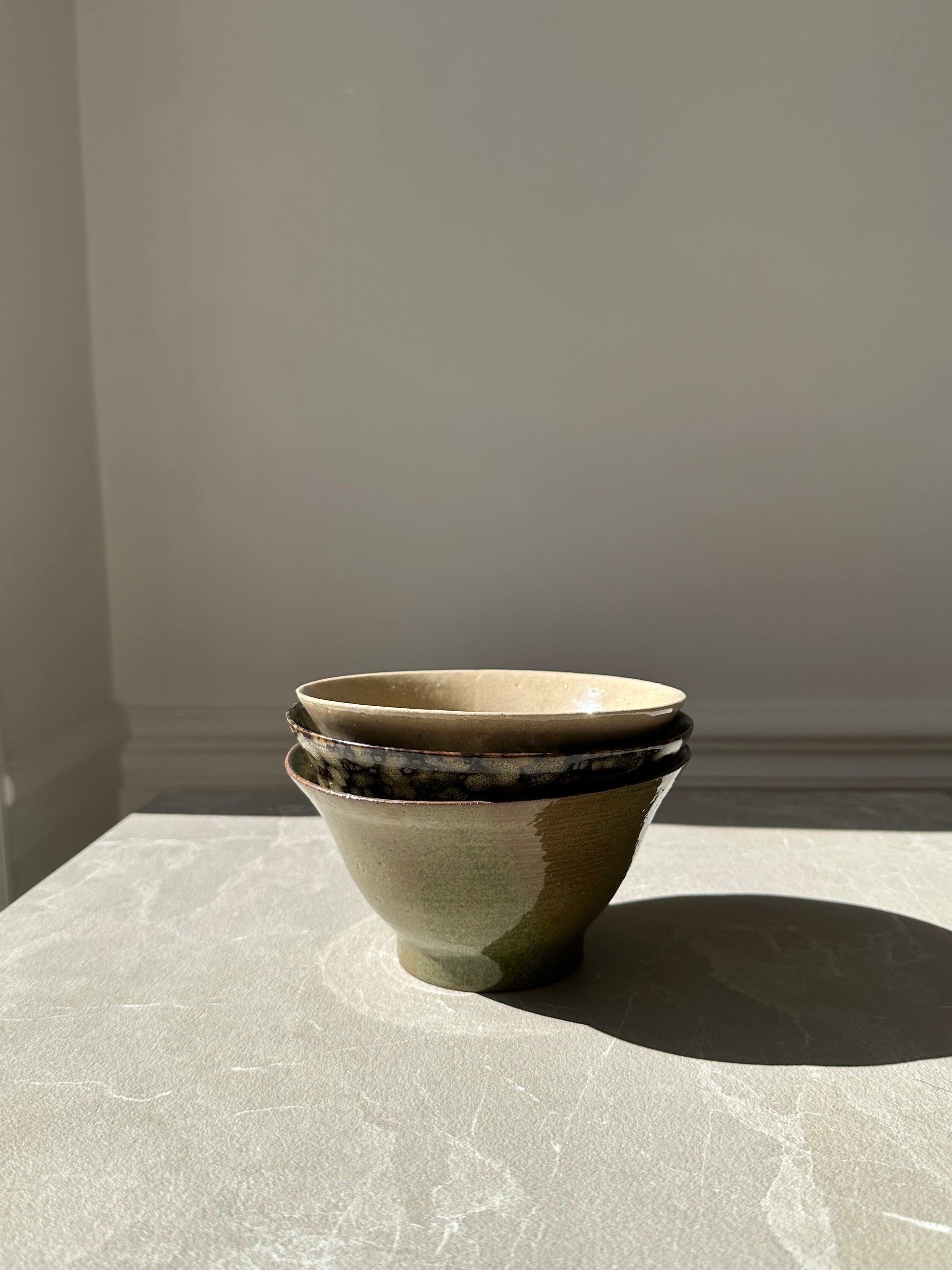 Chaque pièce est façonnée à la main en grès, puis émaillée avec soin pour révéler un jeu de textures et de couleurs, inspirés d’un voyage dans les Pouilles, en Italie — Les émaux mouchetés évoquent les murs patinés par le temps, les céramiques anciennes et la chaleur du sud.