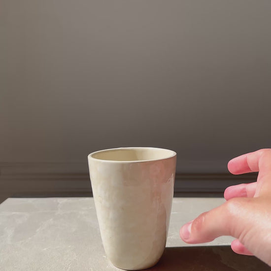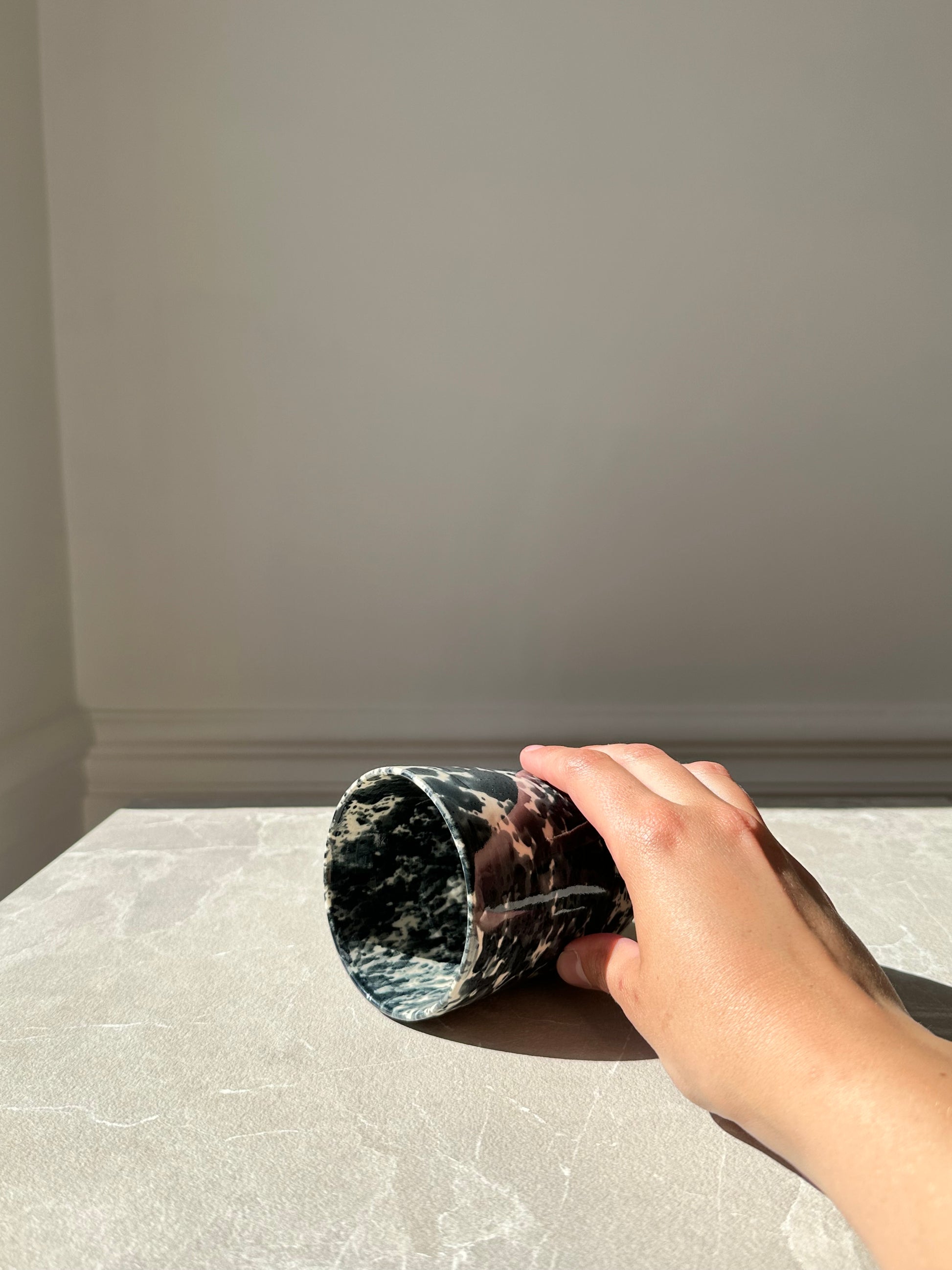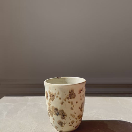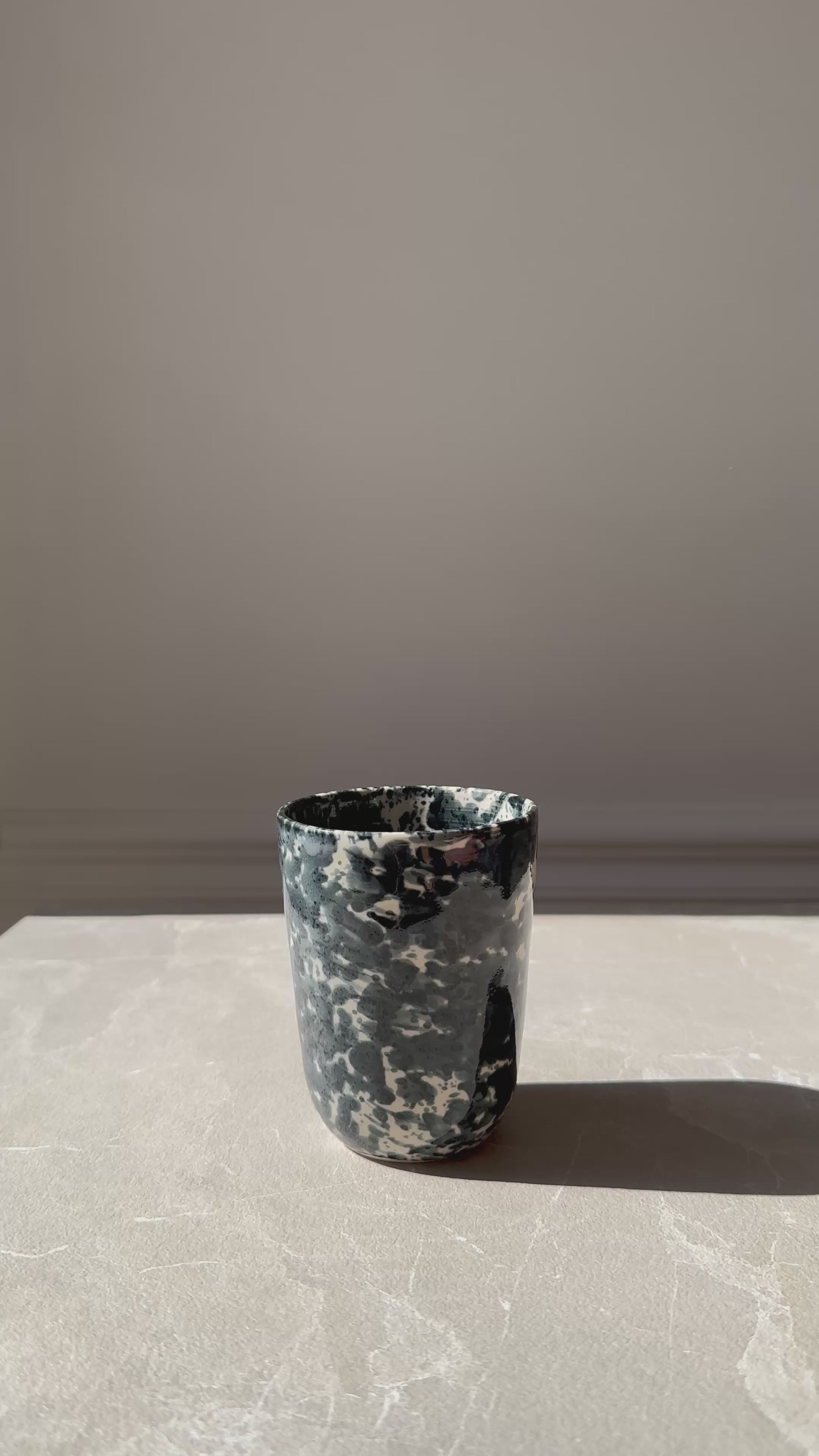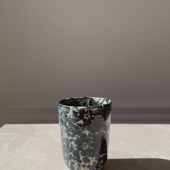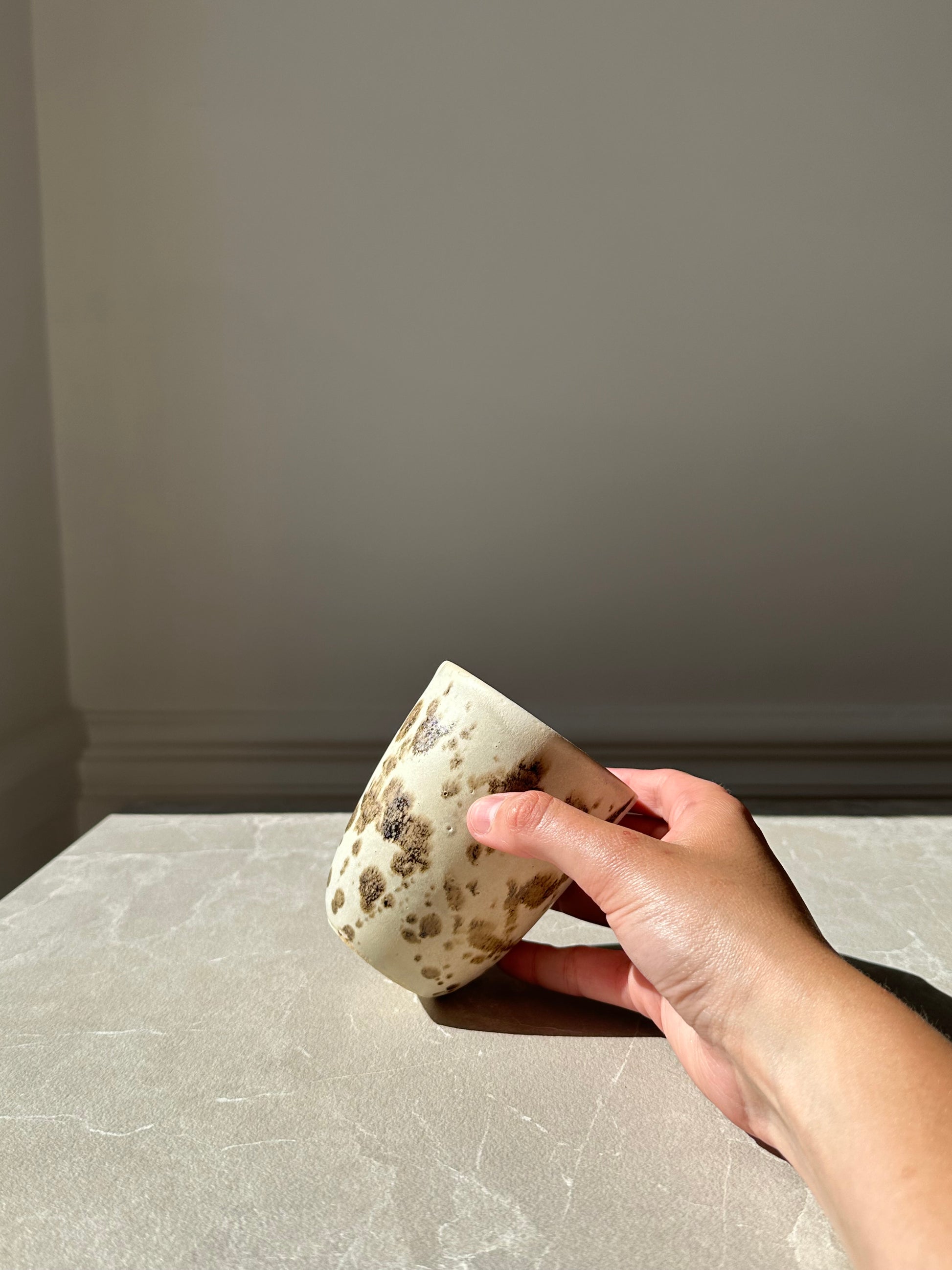 Cette tasse au format gobelet fait partie de la collection Macchiato, qui veut dire tacheté en italien.