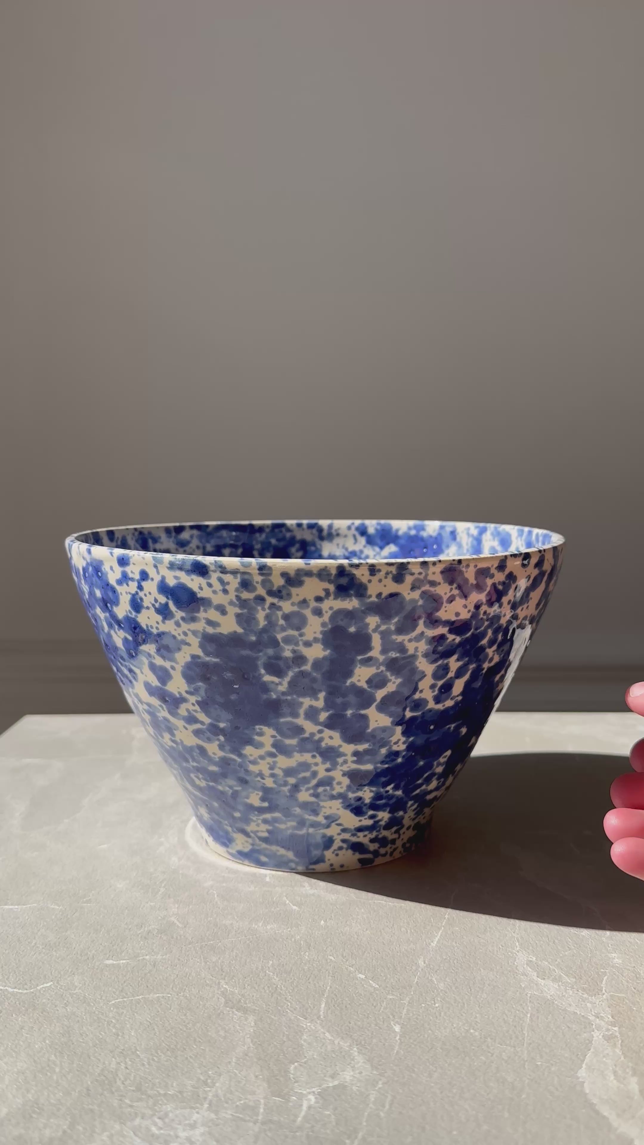 Chaque pièce est façonnée à la main en grès, puis émaillée avec soin pour révéler un jeu de textures et de couleurs, inspirés d’un voyage dans les Pouilles, en Italie — Les émaux mouchetés évoquent les murs patinés par le temps, les céramiques anciennes et la chaleur du sud.
